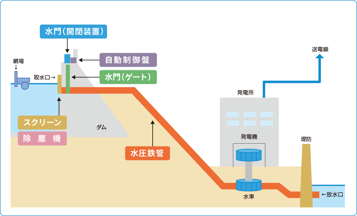 当社主要製品は、水力発電所で使用する「水門」「水圧鉄管」「除塵機」及び関連製品です。