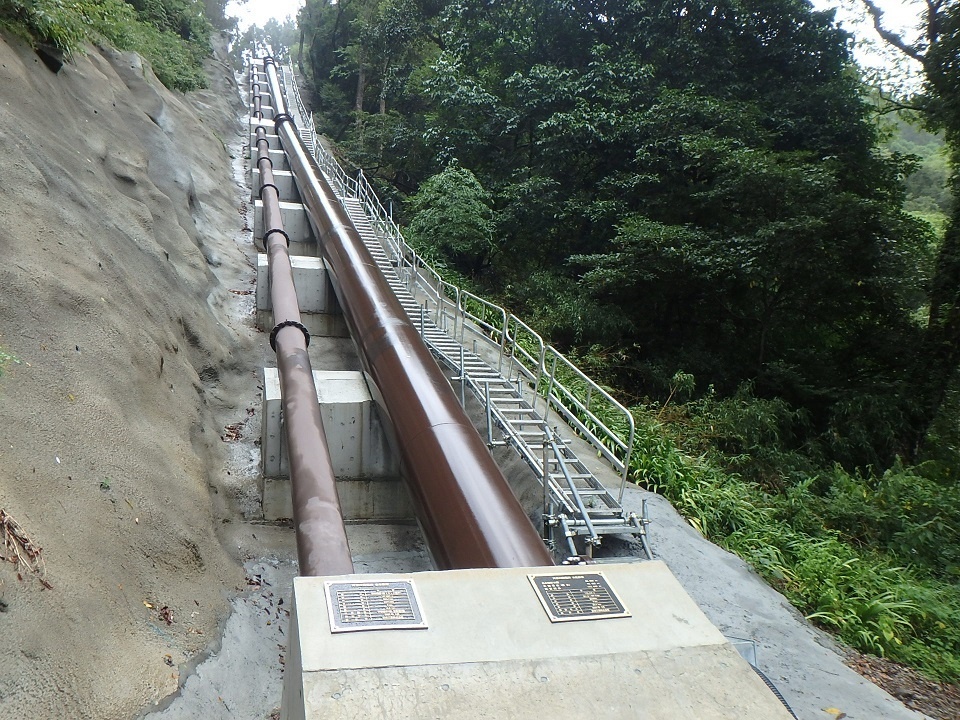 水圧鉄管 ホーム > 製品情報 > 水圧鉄管 ダム・取水設備・ヘッドタンク又はサージタンクから水車に直接導水するために設けられた設備です。 水圧管路であり、主要耐圧部をなす鉄管と付属設備で構成されています。 水圧鉄管一覧